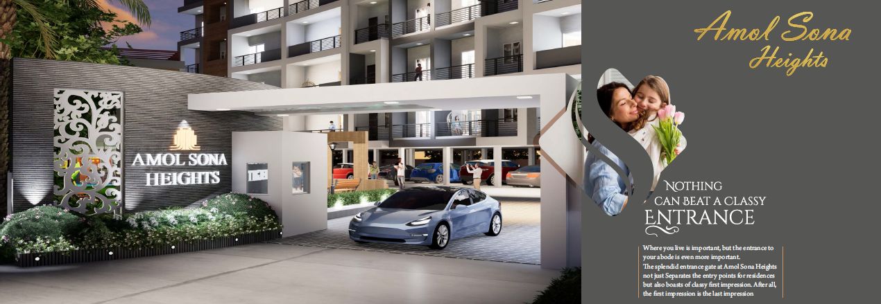 The splendid entrance gate at Amol Sona Heights not just Separates the entry point for residences but also boasts of classy first impression. After all, the first impression is the last impression.